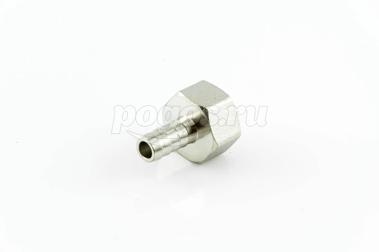 С одной стороны имеет трубную внутреннюю резьбу 1/2" , с другой стороны штуцера елочка Ду-10 мм для присоединения к шлангу (всех видов).