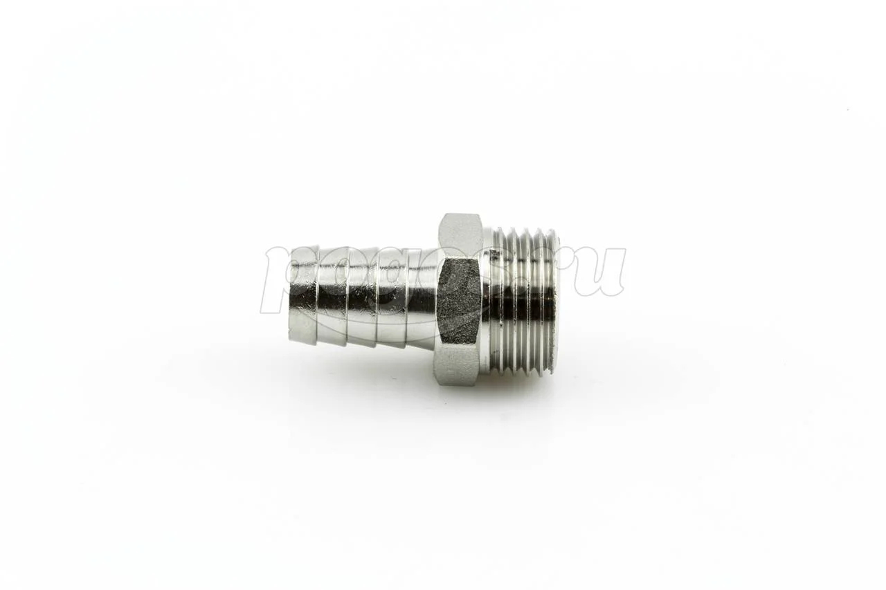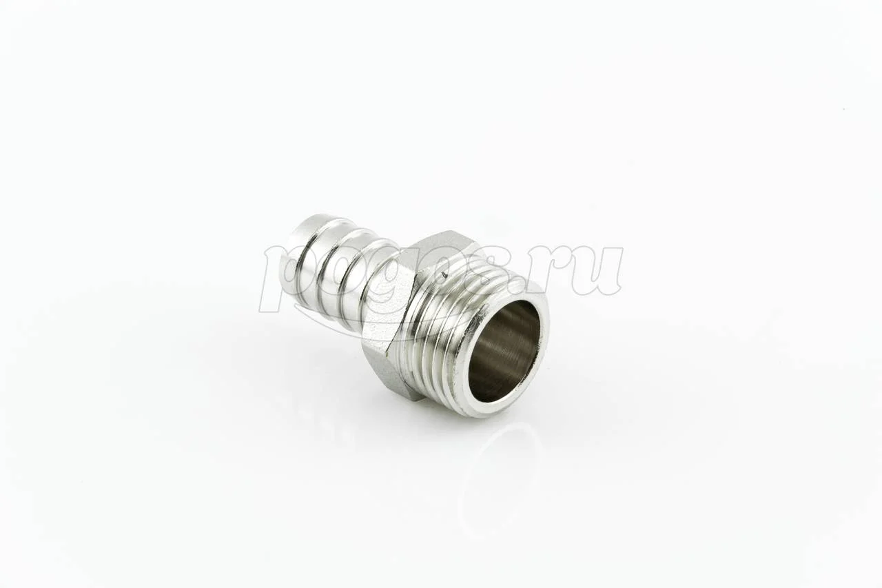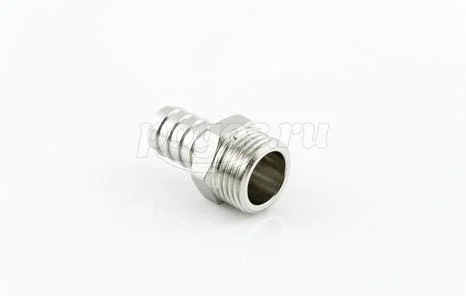 С одной стороны имеет трубную наружнюю резьбу 1/2" , с другой стороны штуцера елочка Ду-14 мм для присоединения к шлангу (всех видов).