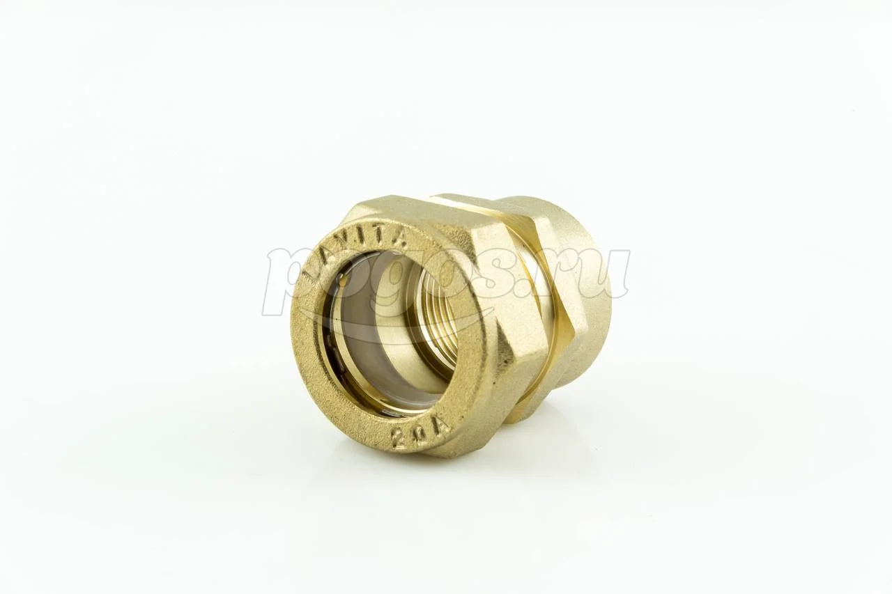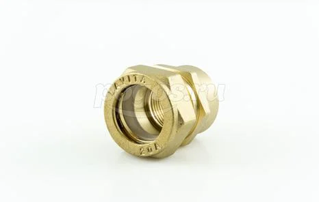 При сборке фитинга конец трубы одевают в латунный фитинг ослабленной накидной гайкой до конца и затем затягивают гайку.