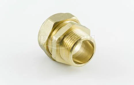 При сборке фитинга конец трубы одевают в латунный фитинг ослабленной накидной гайкой до конца и затем затягивают гайку.