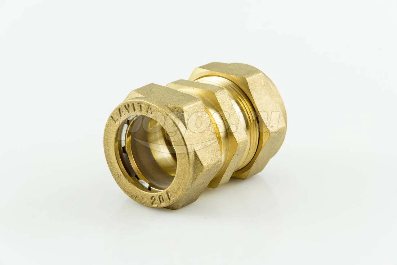 Корейская обжимная соединительная муфта (труба-труба) C/P 20 Lavita из латуни.