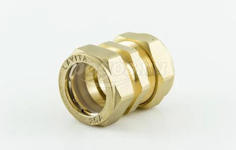 Корейская обжимная соединительная муфта (труба-труба) C/P 25 Lavita из латуни.