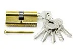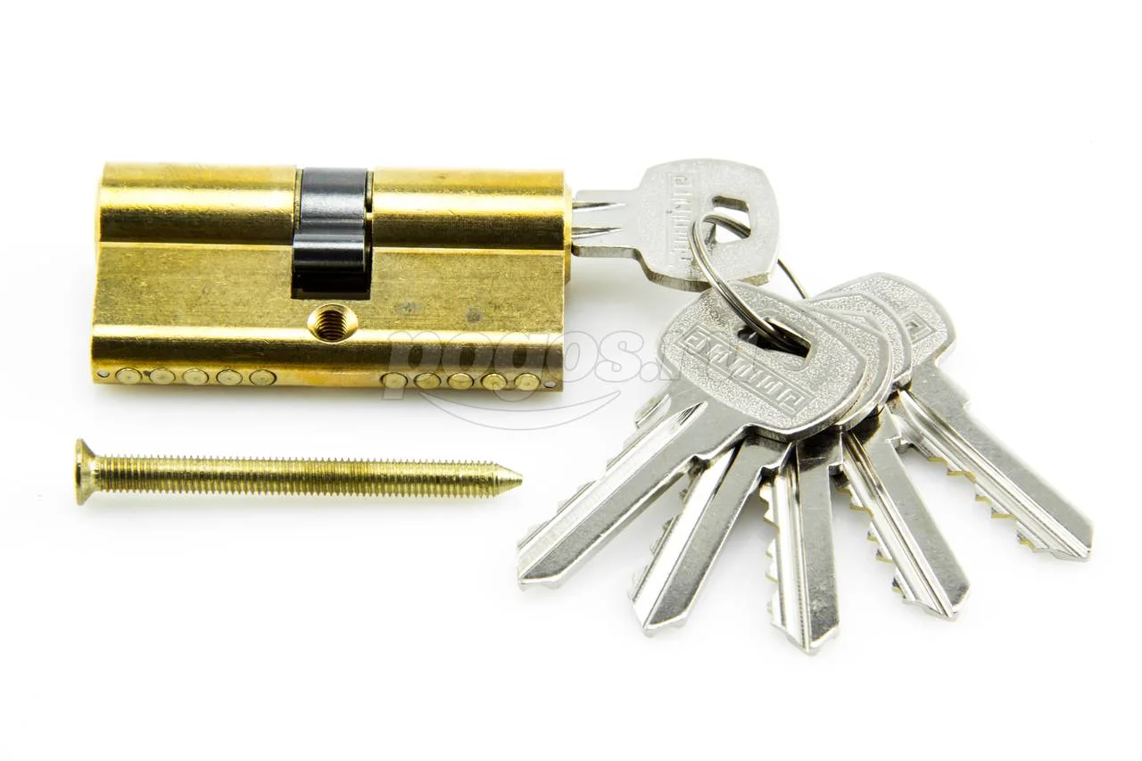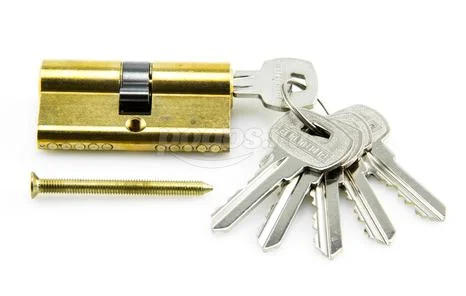 Механизм цилиндровый для врезных замков. Европрофиль. Английский ключ 6 штук. Материал корпуса и ключей – латунь. Ключ-ключ. Механизм защищен стержнем от высверливания. Выступающий на 30 градусов из плоскости механизма кулачок защищает цилиндр от выбивания из двери. Длина механизма - 60 мм (30-30 мм)