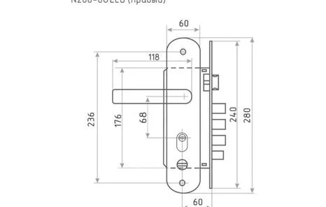 Технические характеристики врезного замка НОРА-М правый, мат. хром/черн.никель