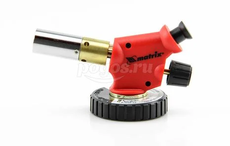 На насадке расположен винт, который служит для регулировки подачи газа. Горелка обладает пьезоподжигом.