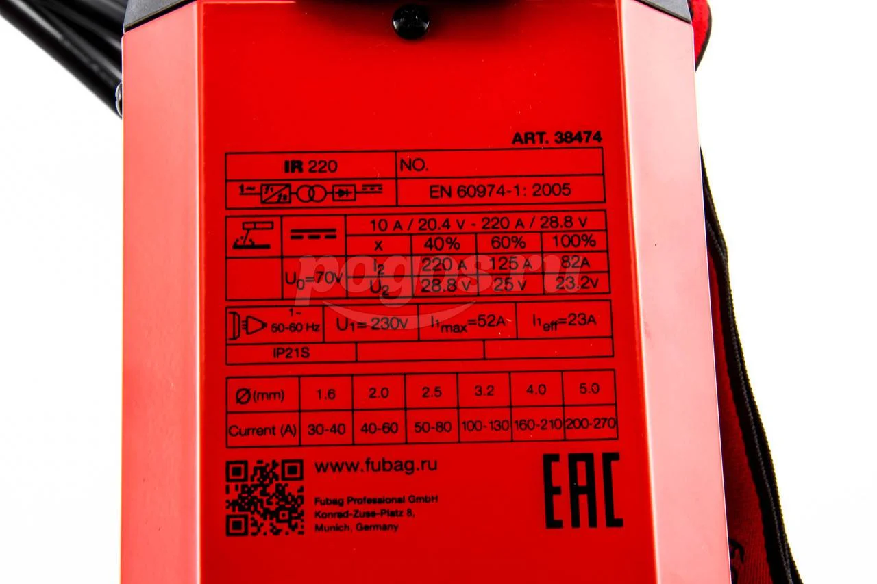 Сварочный инвертор FUBAG IR 220, артикул: 31404 / 41331
