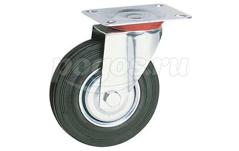 Колесо мебельное поворотное d-125мм с тормозом болтовое крепление 110кг декоративный кожух резина