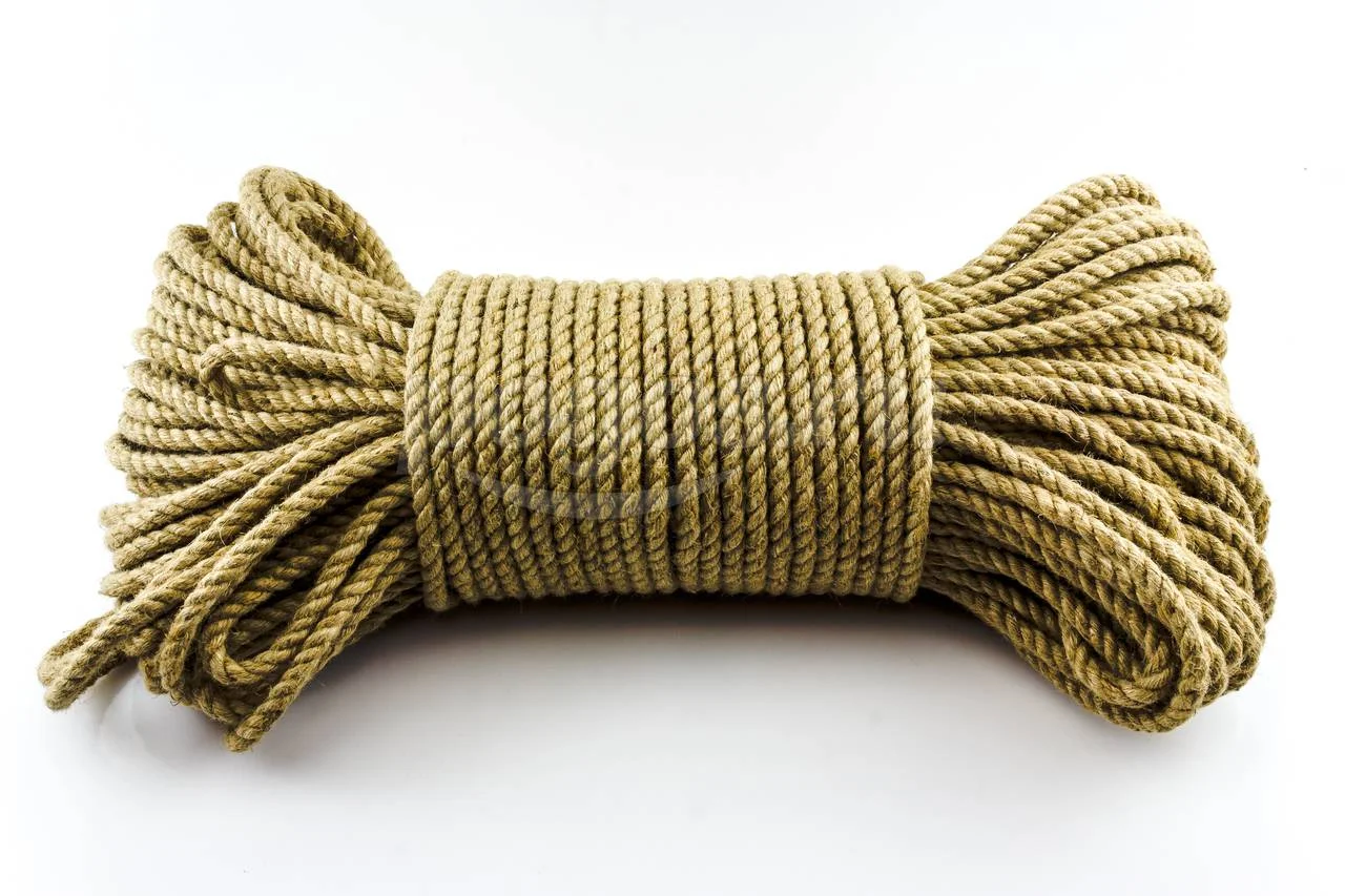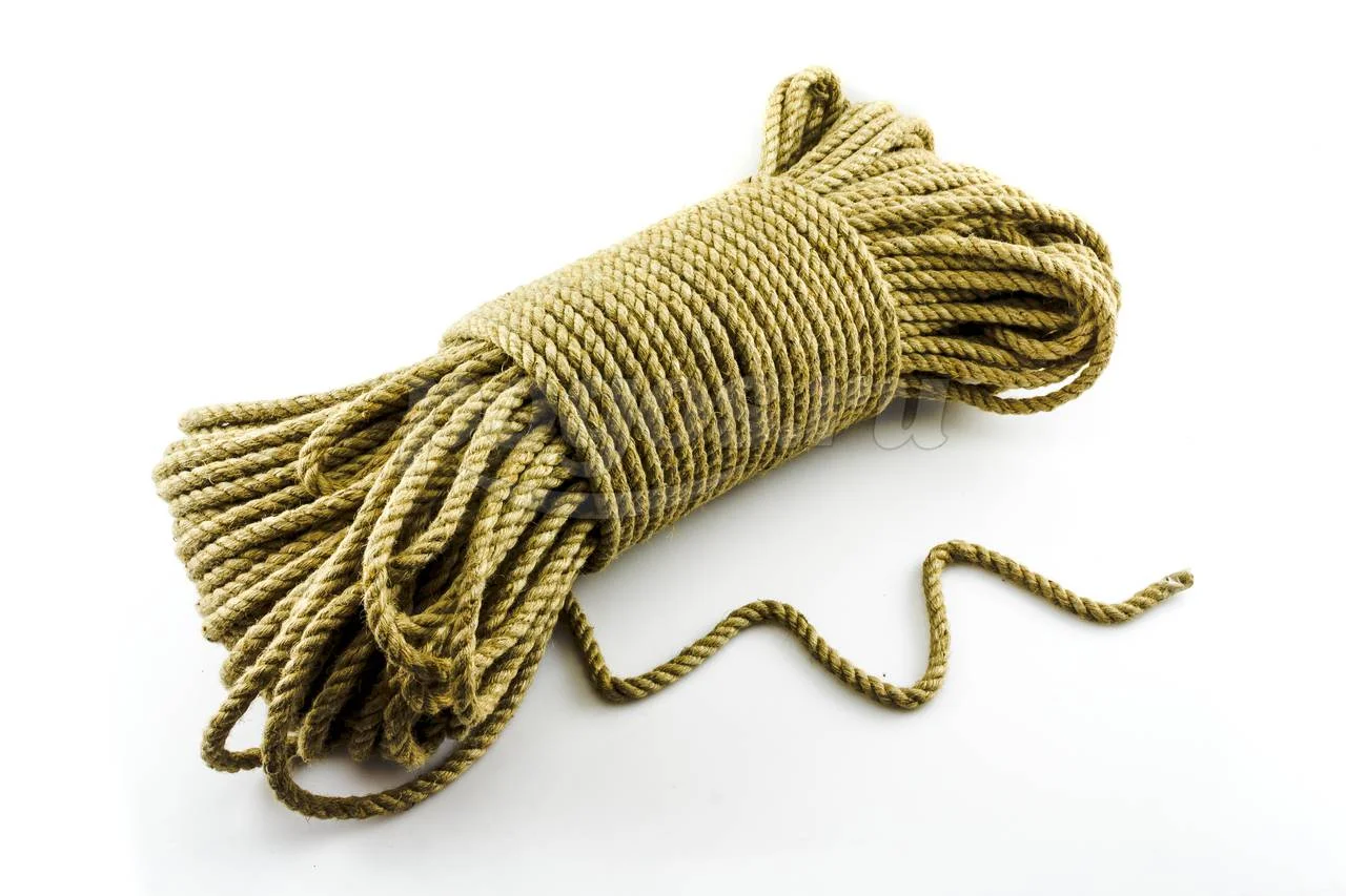 Канат джутовый или как его еще называют - веревка джутовая, состоит из 3-х скрученных прядей, диаметр сечения 10мм, длина окружности 30мм. Разрывная нагрузка каната 450кгс.