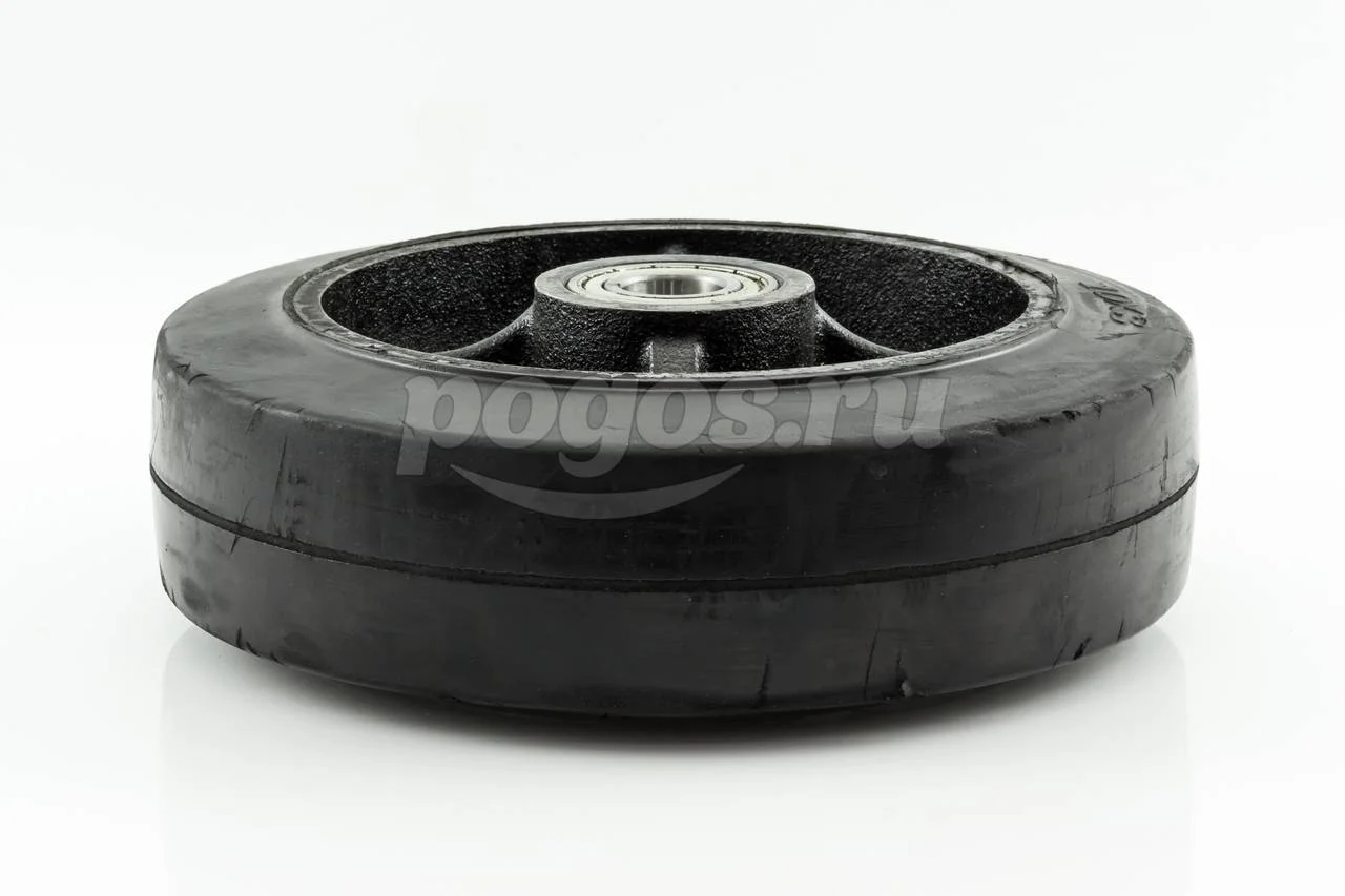 Шинка изготовлена из черной резины, обод из чугуна, для смазки подшипника имеется ниппель.