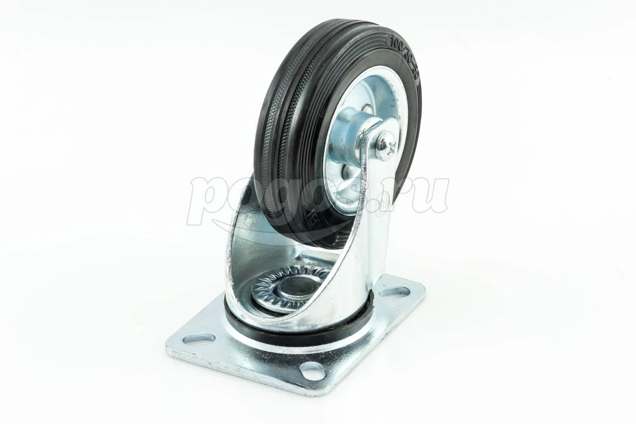 Колесо промышленное поворотное 100мм 88кг, усиленное резина