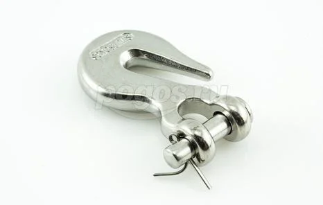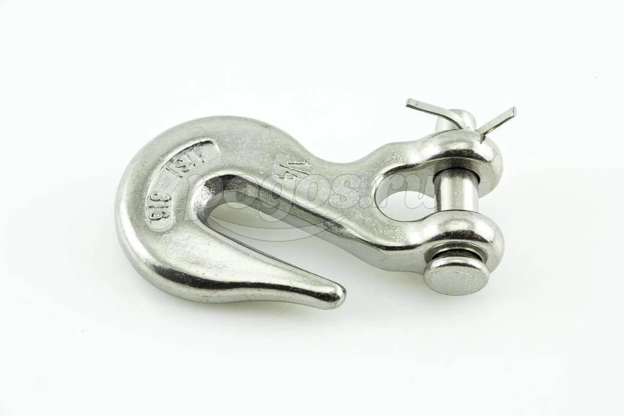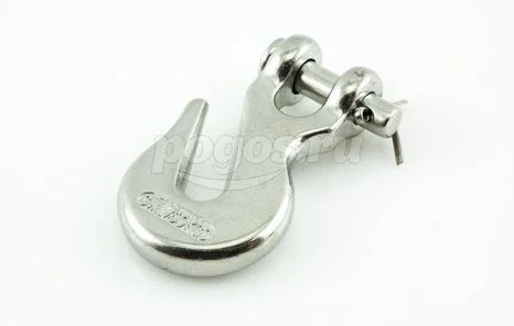Для крепления к цепи используется запорный палец, который фиксируется шплинтом, что позволяет быстро установить крюк без использования соединительного звена.