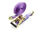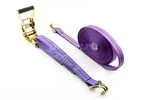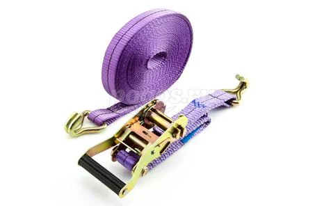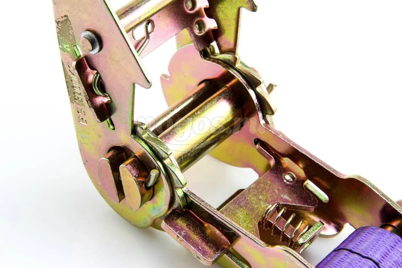 Стяжной ремень состоит из мягкой полиэстеровой ленты необходимой длины, храпового (стяжного) механизма и концевого элемента- крюка.
