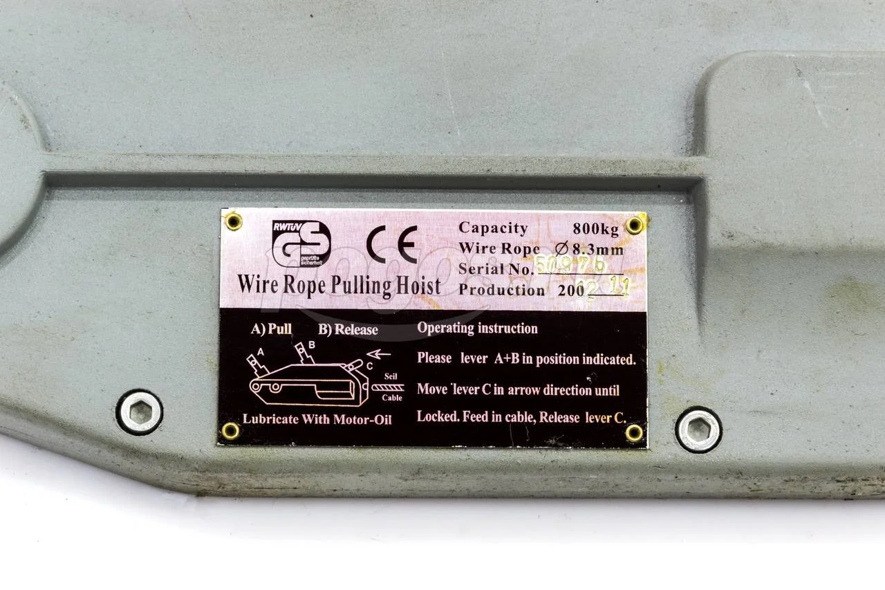 Устройство монтажно-тяговое TORIN 800кг трос 8.3ммх20м, артикул: TRT0800