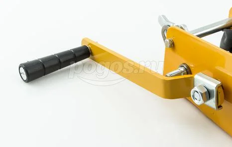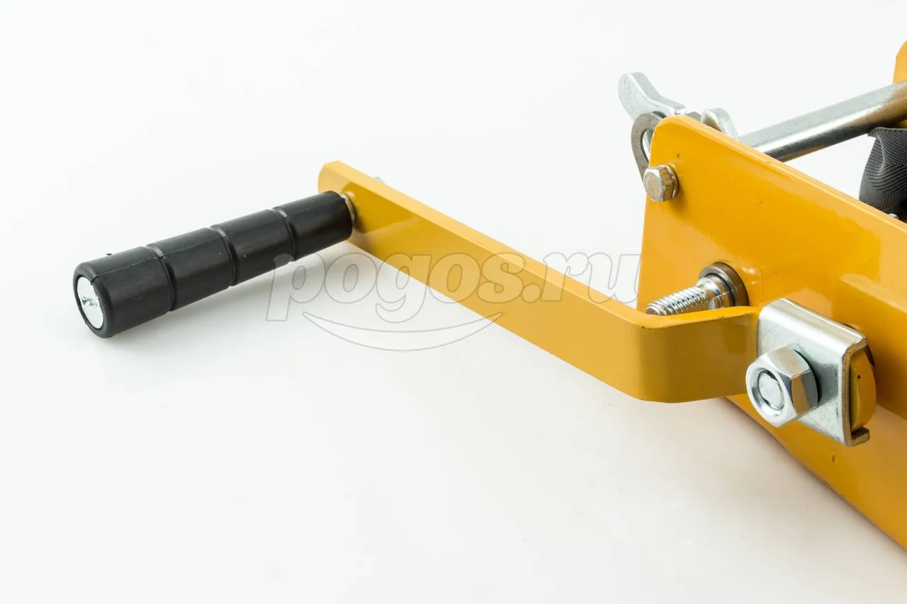 Подъем груза осуществляется за счет вращения ручки.