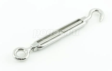 В отверстия вкручены два винта с противоположной резьбой. Наружные концы винтов могут быть оснащены крюками, кольцами, вилками.