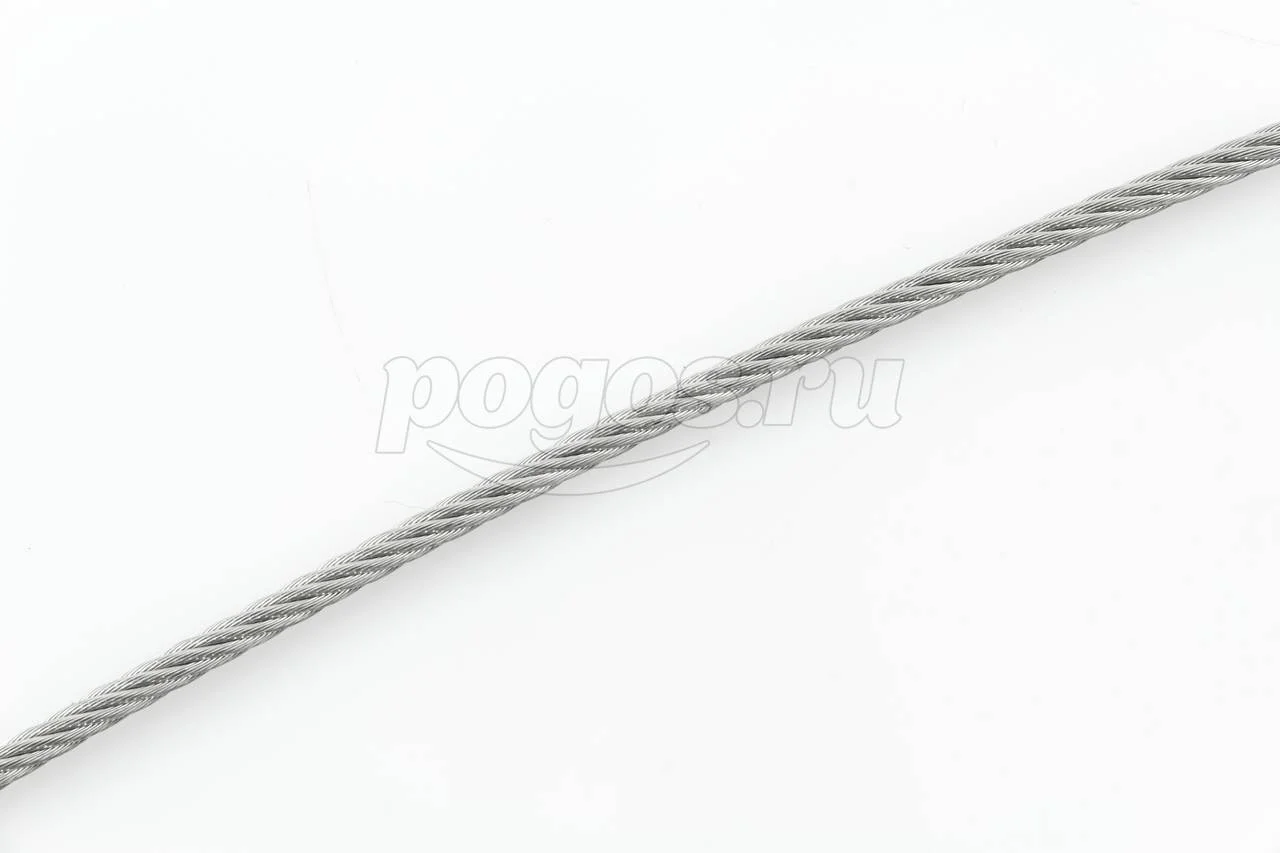 Трос нержавеющий мягкий, плетение 7Х19 DIN 3060 (ART 8382), проволочный канат средней жесткости, состоящий из семи каболок по девятнадцать жил каждая.