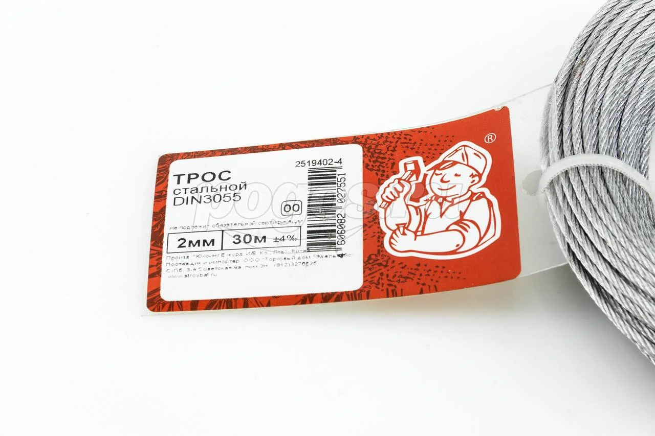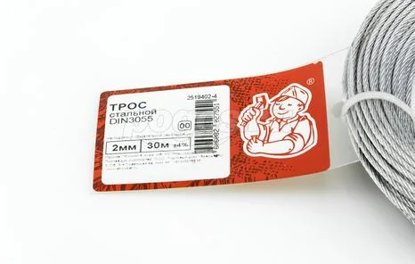 Трос 2мм оцинкованный 48кгс DIN 3055 (бухта 30м), артикул: 2519402-4
