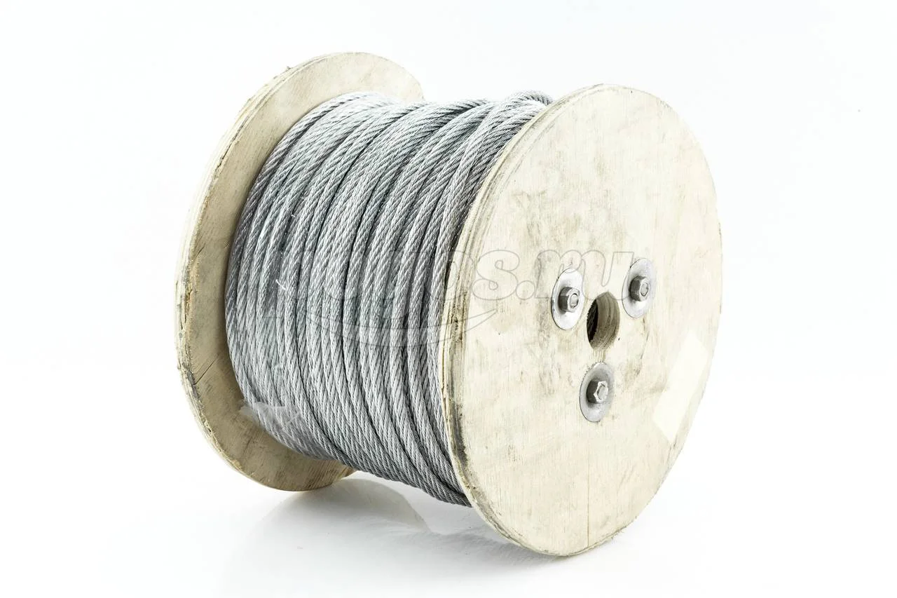Трос изготовлен из углеродистой стали и оцинкован.
