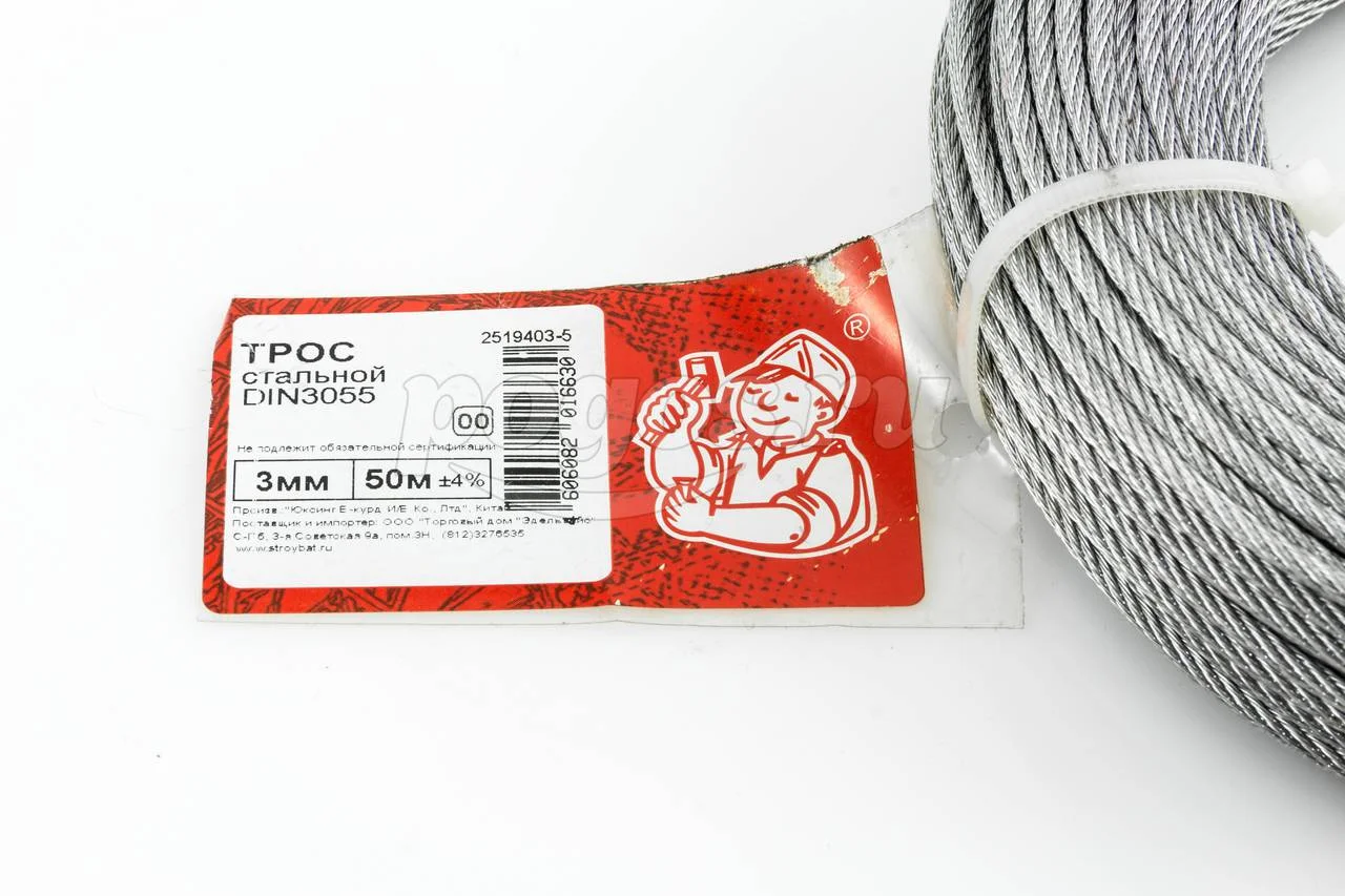 Трос 3мм оцинкованный 106кгс DIN 3055 (бухта 50м), артикул: 2519403-5