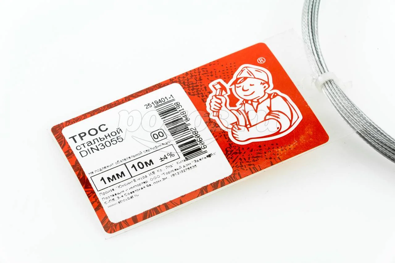 Трос 1мм оцинкованный 10м DIN 3055, артикул: 2519401-1