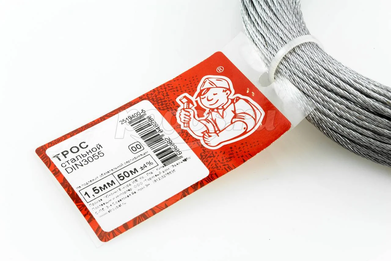 Трос 1,5мм оцинкованный 50м DIN 3055, артикул: 2519400-5