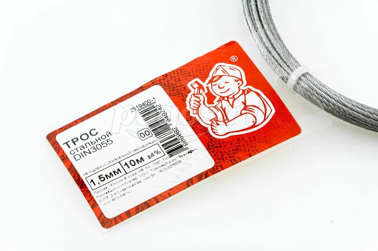 Трос 1,5мм оцинкованный 10м DIN 3055, артикул: 2519400-1/а7.2519400-1