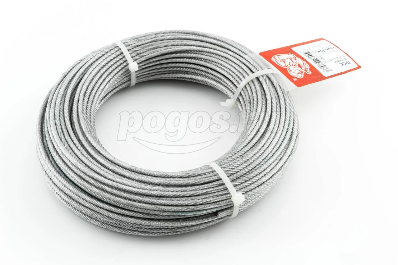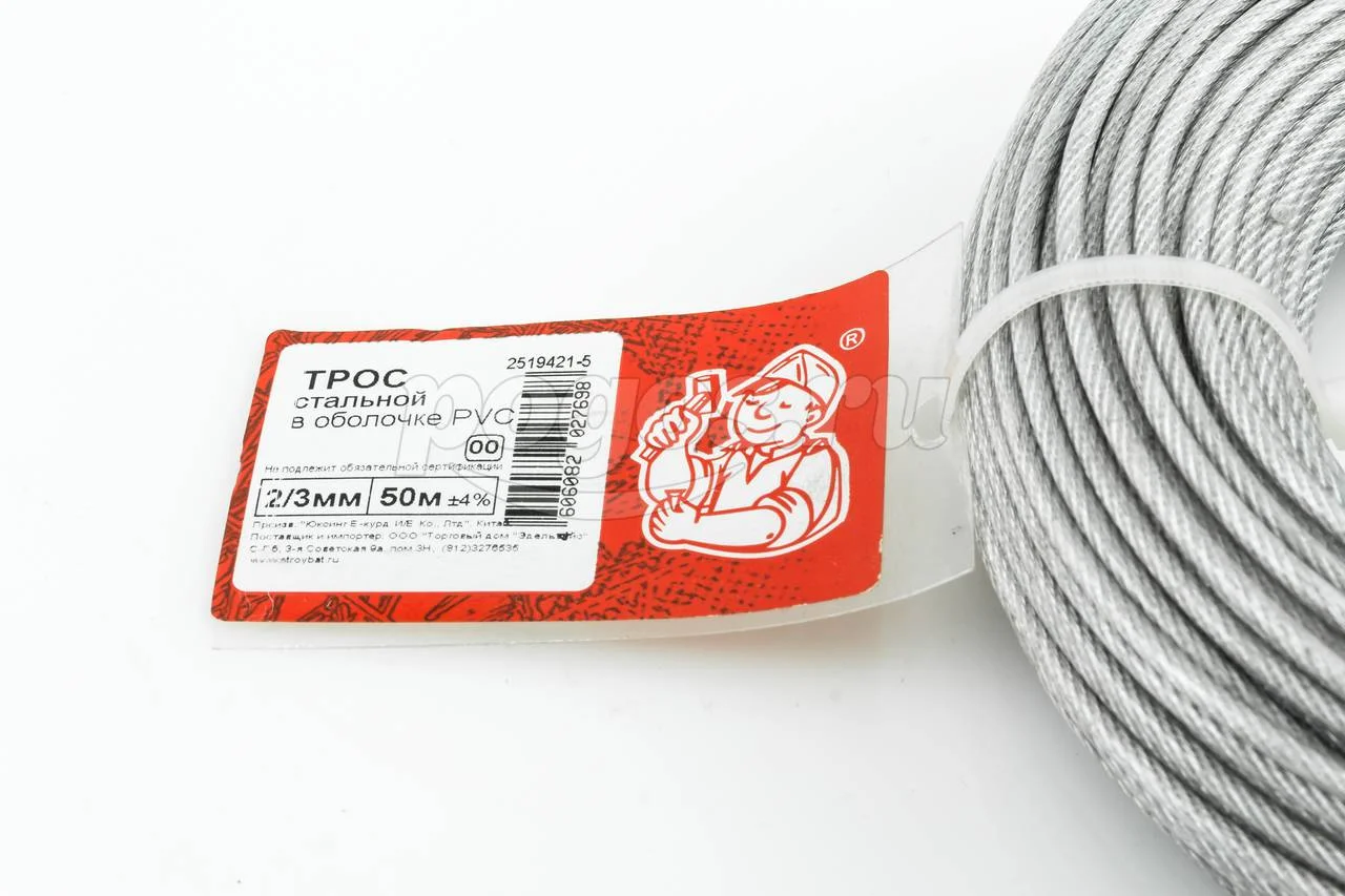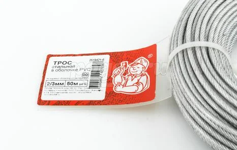 Трос 2/3мм оцинкованный в ПВХ оплетке 48кгс DIN 3055 (бухта 50м), артикул: 2519421-5/а7.2519421-5