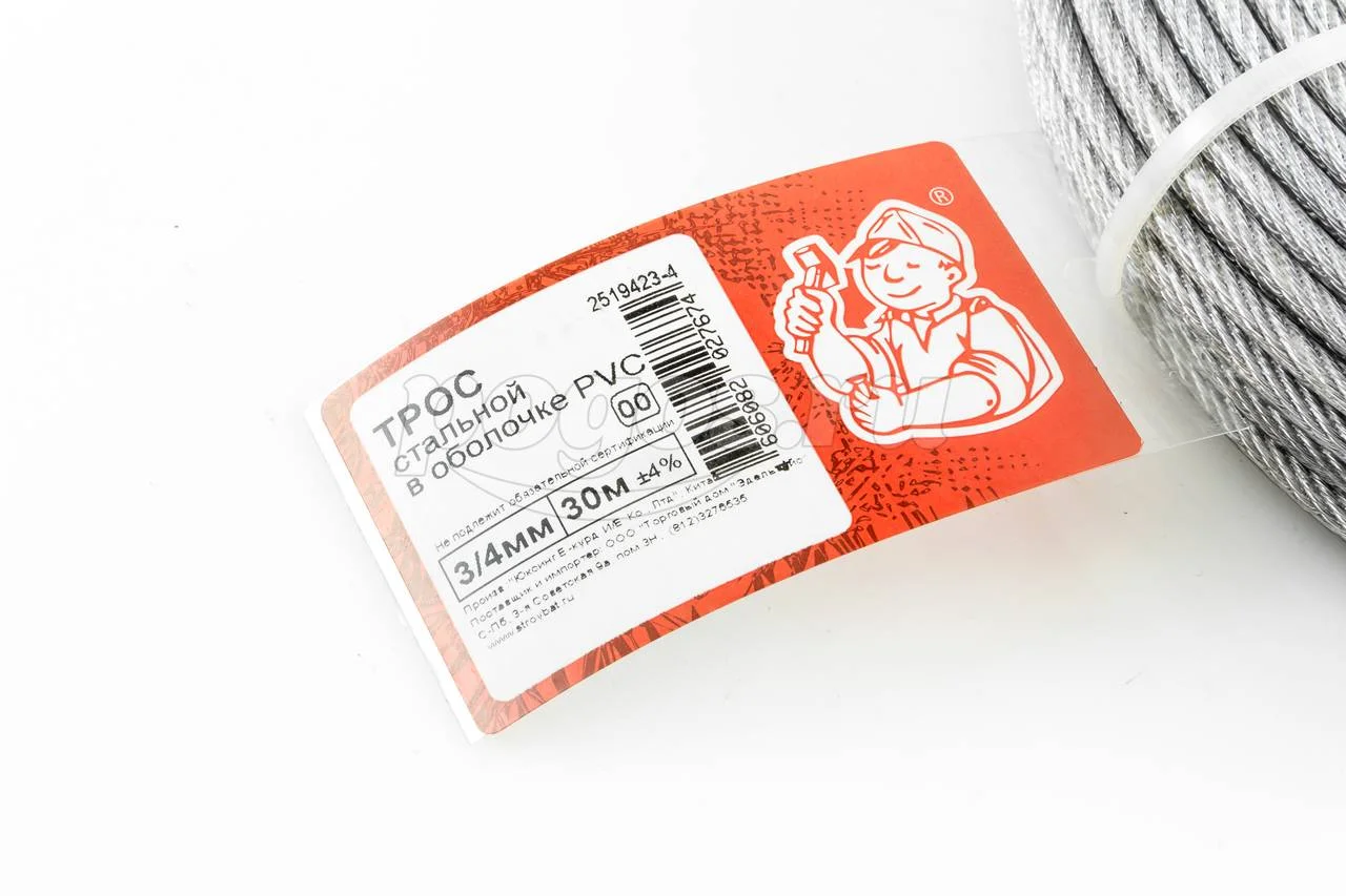 Трос 3/4мм оцинкованный в ПВХ оплетке 30м DIN 3055, артикул: 2519423-4