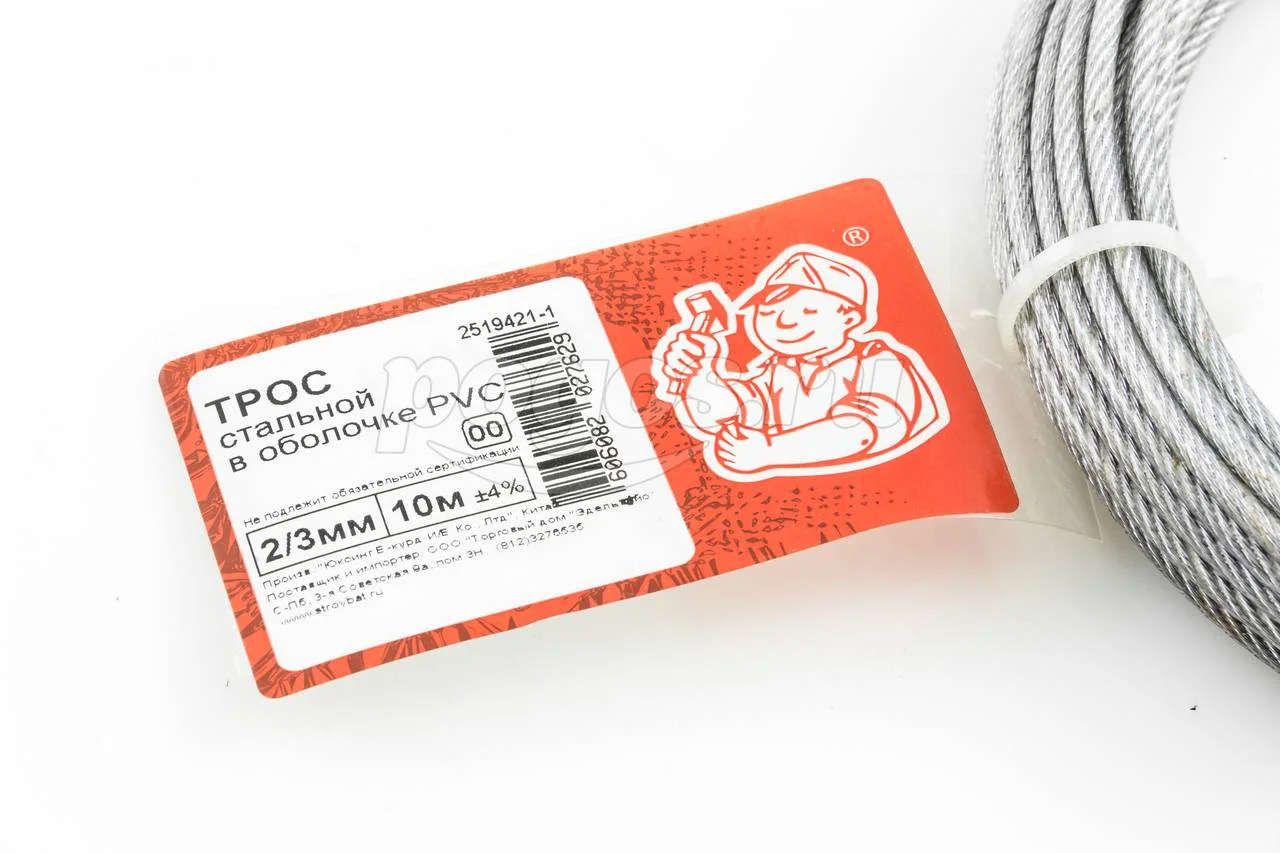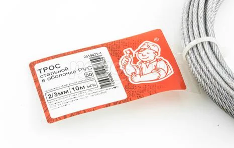Трос 2/3мм оцинкованный в ПВХ оплетке 10м DIN 3055, артикул: 2519421-1
