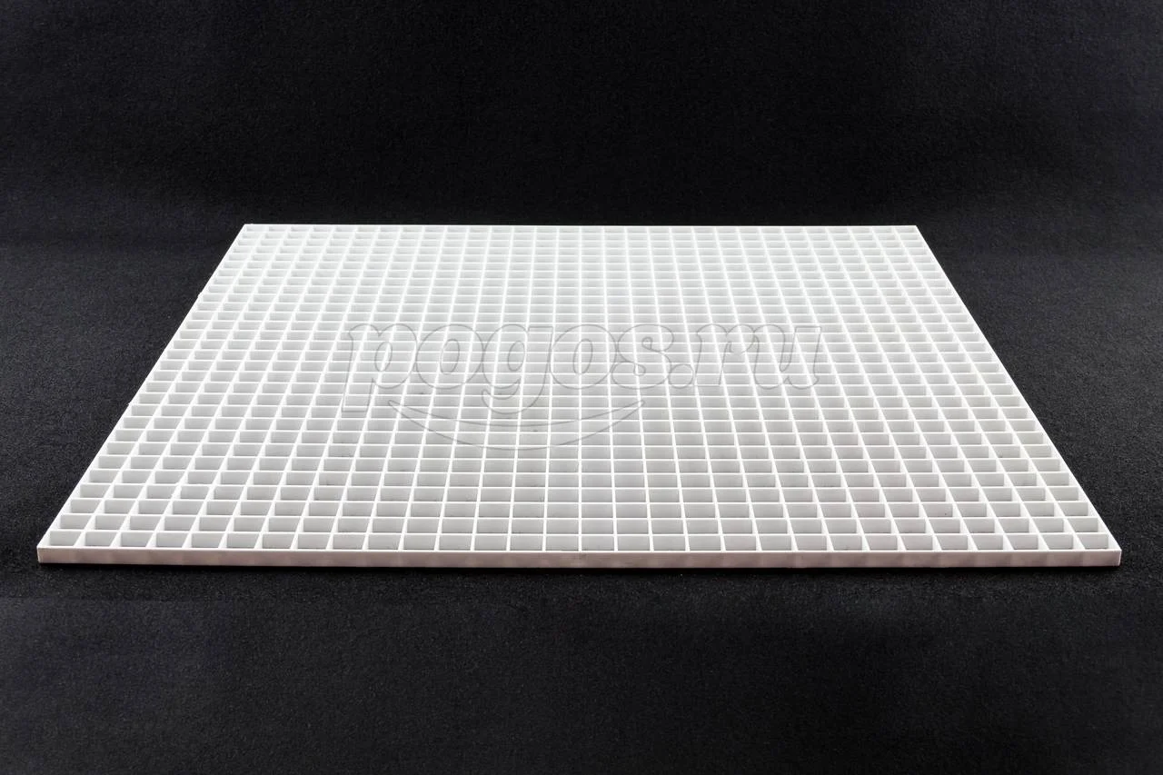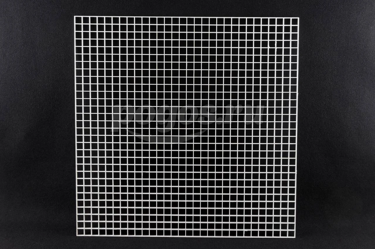 Размер решётки 595х595мм, размеры ячеек 18х18мм, толщина изделия 10мм.