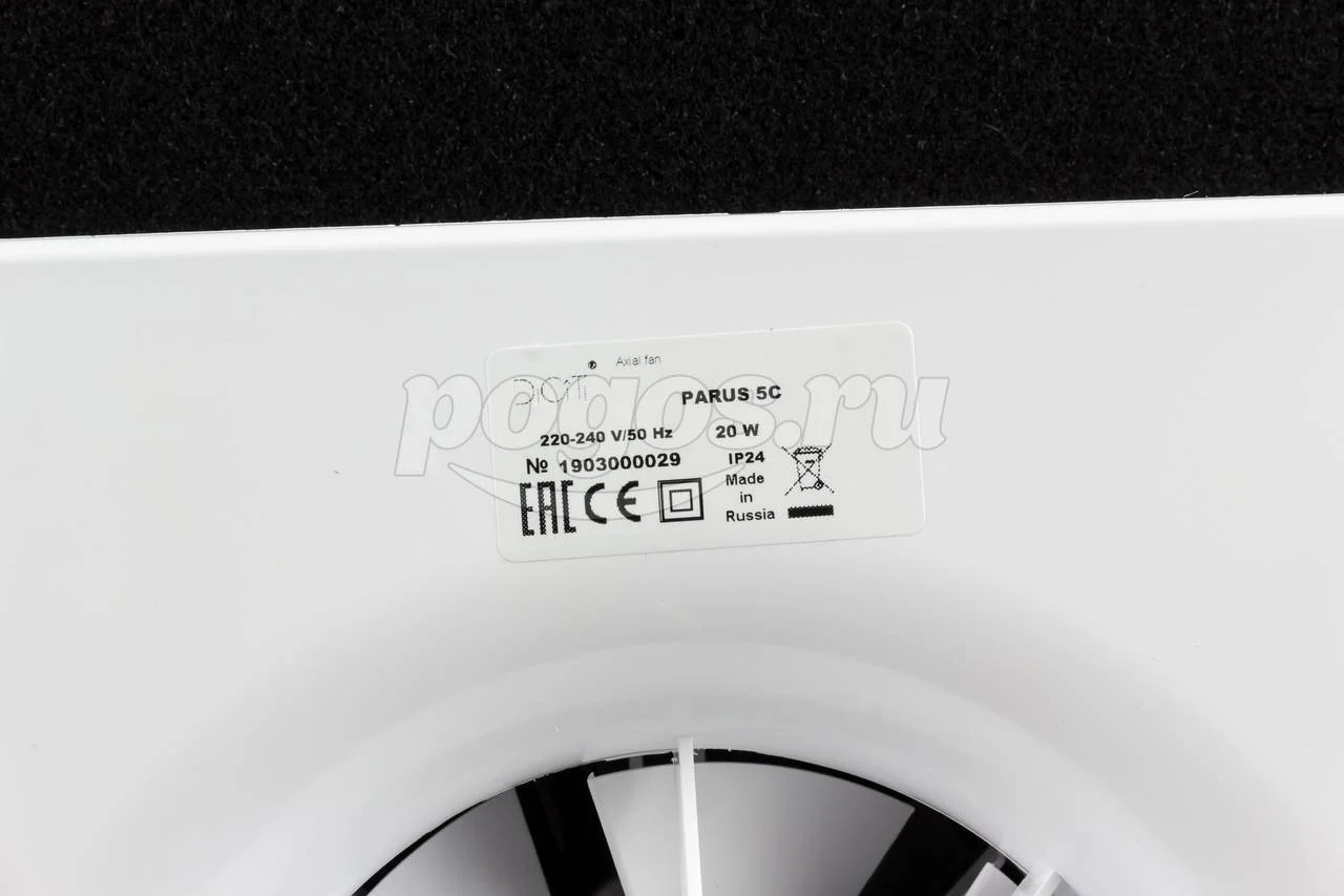 Осевой вытяжной вентилятор с обратным клапаном ERA D 125, артикул: PARUS 5С
