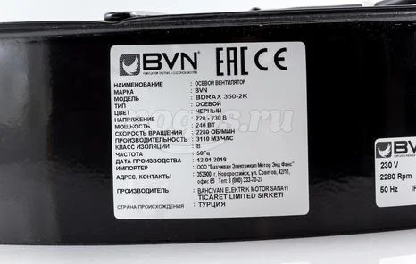 Осевой вентилятор для охлаждения d-350мм 3110м3/ч 240Вт круглый фланец BAHCIVAN