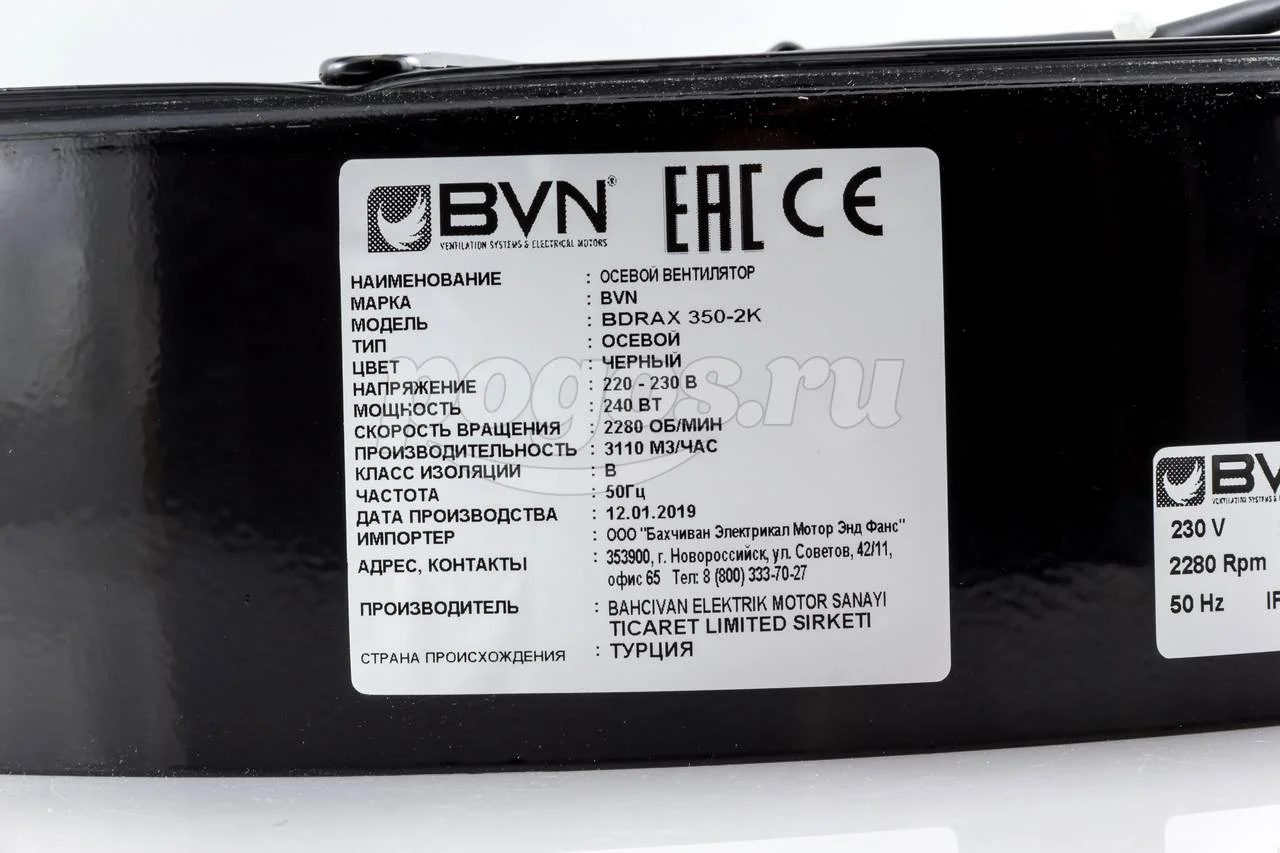 Осевой вентилятор для охлаждения d-350мм 3110м3/ч 240Вт круглый фланец BAHCIVAN, артикул: BDRAX 350-2К