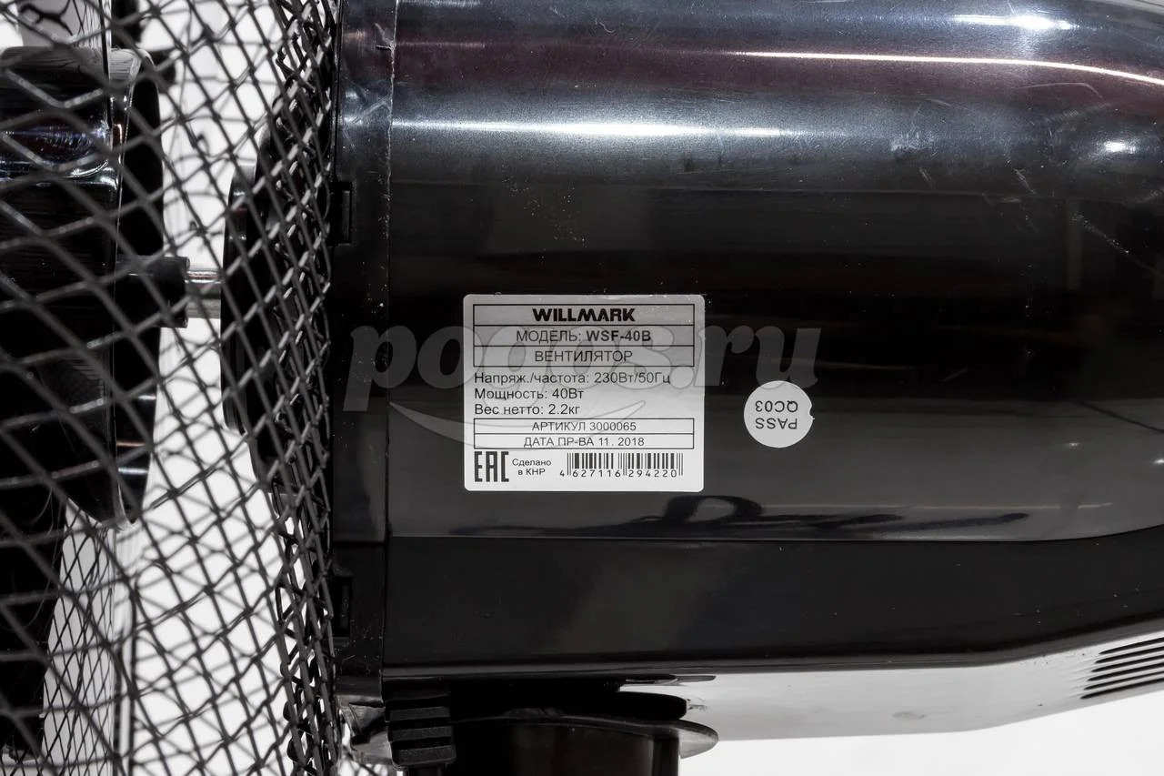 Вентилятор напольный 40Вт h120см d40см 3скорости черный WSF-40B WILLMARK, артикул: А08521