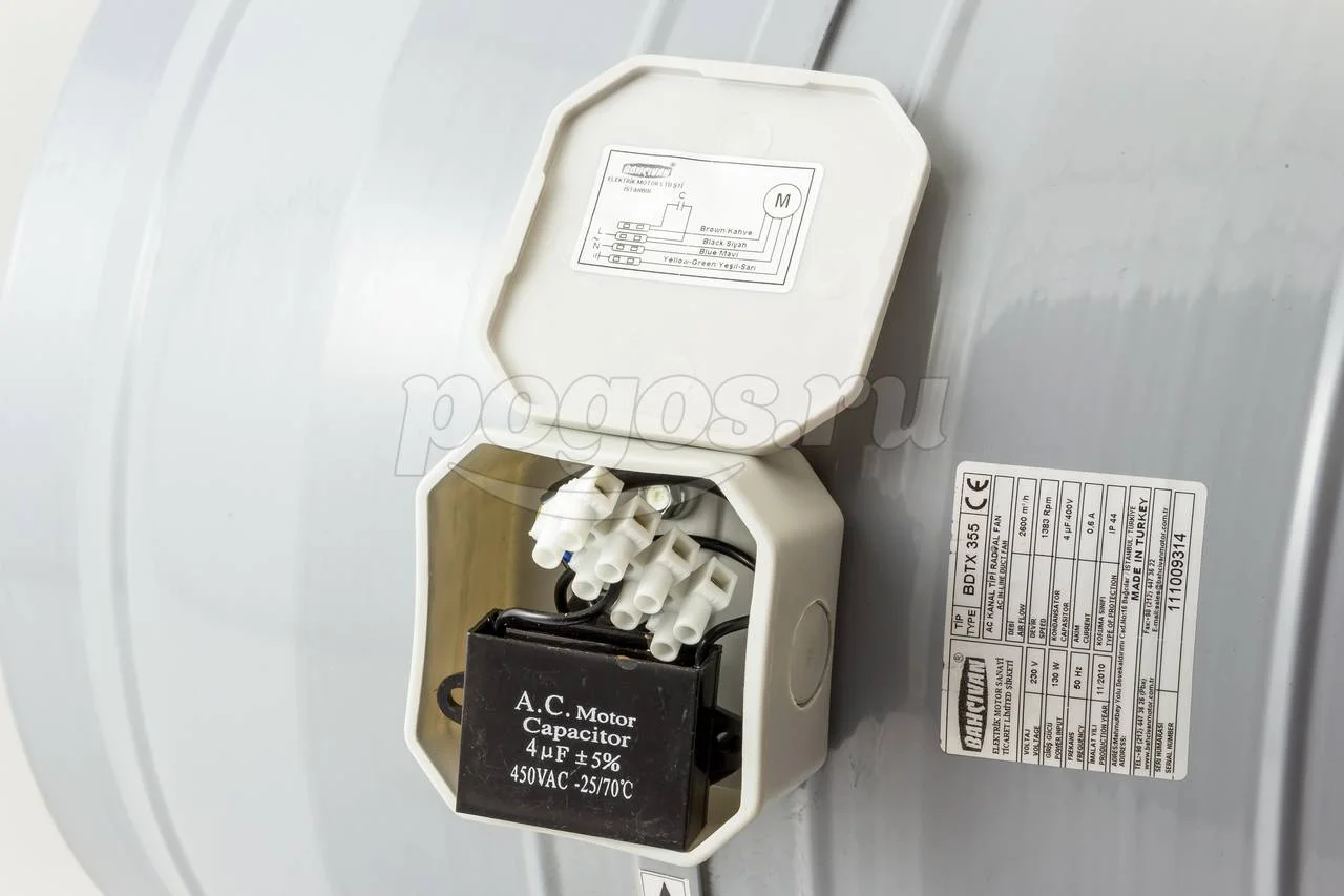 Круглый канальный вентилятор BDTX 355 спроектирован для использования в линейных системах со стандартными номинальными размерами сечения воздуховода 355 мм.