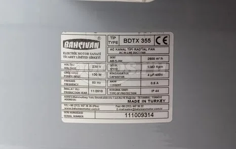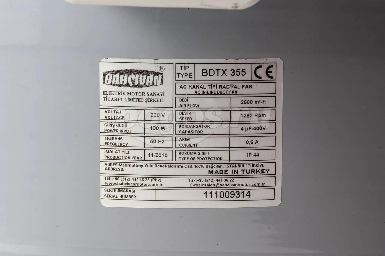 Вентилятор BAHCIVAN BDTX 355 центробежный канальный, артикул: BDTX 355